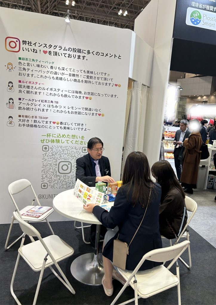 またルイボスティー、緑茶三角ティーバッグ商品を中心に展示し、弊社売れ筋商品であることを展示会を通じて認知して頂きました。